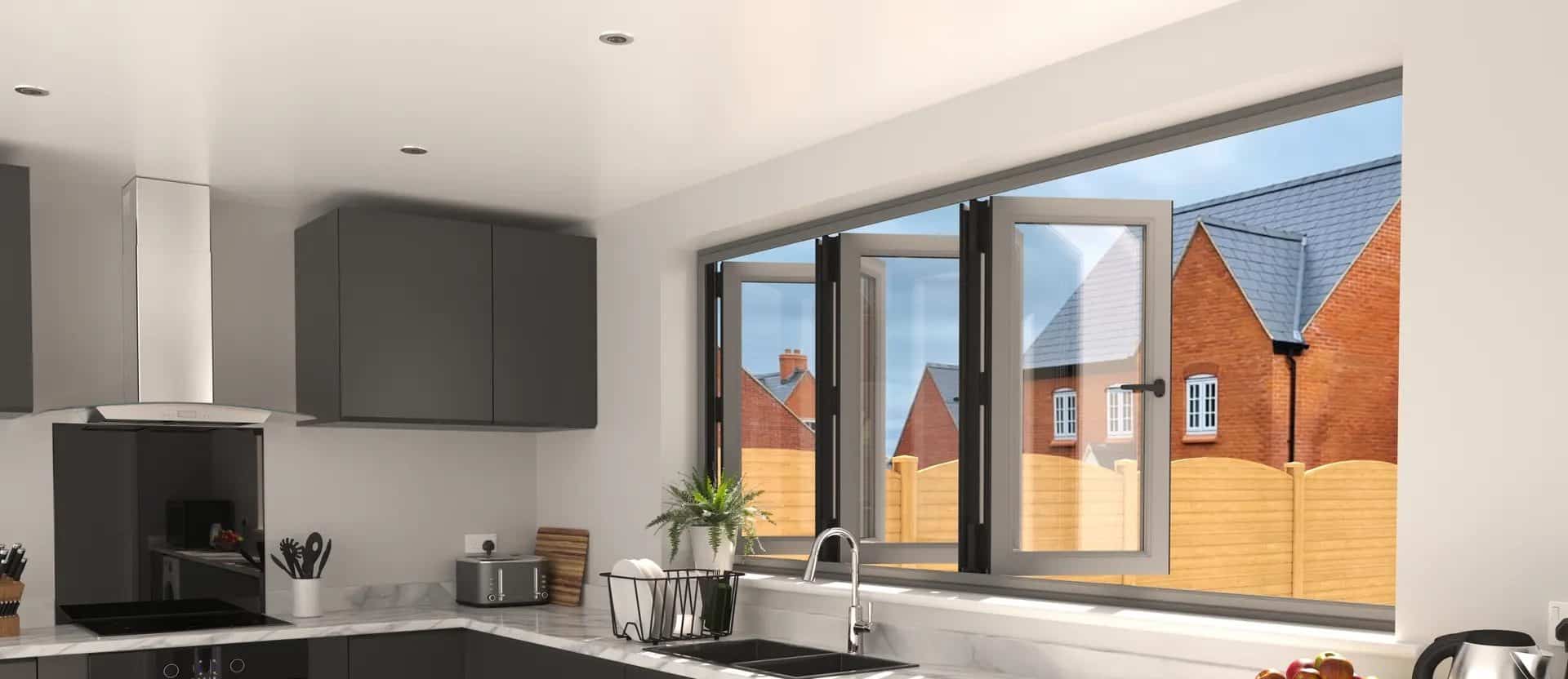Bi-fold windows offer panoramic views and flexible openings, ideal for bars, kitchens, garden rooms, or open-plan living spaces.